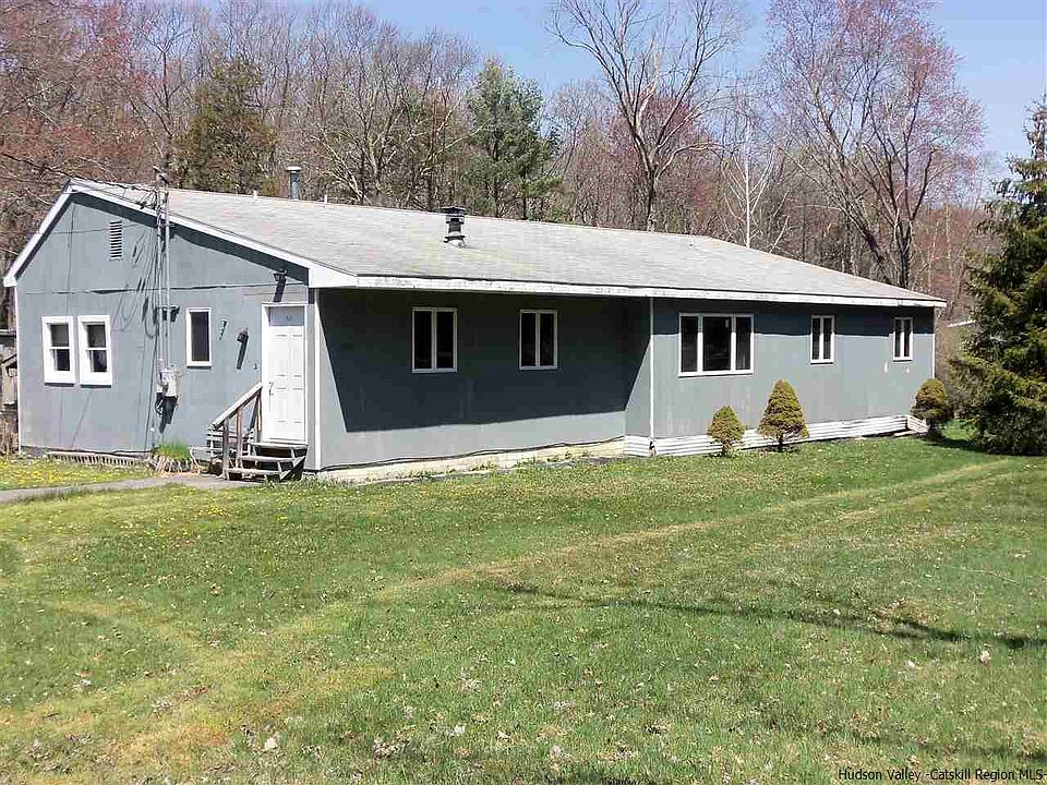Country 70's ranch home recently updated in the town of Rosendale. This home is nestled on 1.2 acres of sprawling trees, a nice kept lawn and a stream with a wooden bridge. The spacious 1820 sq. ft ranch home includes 3 plus bedrooms with new laminate flooring and wood paneling. A open floor plan for entertaining guests and a large picture window in living room. The dining area has a wood stove for those colder nights. The kitchen has been recently updated with new oak cabinets and corian style counter tops, a new stove and exhaust hood. The bath has been replaced with new fixtures, new tile flooring and a double vanity sink . The heating system includes two types, new electric heaters and forced hot air, with 2 oil furnaces. Also, an updated 200 amp service and a separate laundry room. There is a enclosed porch that has many windows to sit and enjoy. This home also includes a 744 sq. ft. garage and a paved driveway. Very close to Ulster Community College, Rosendale Recreation Pool and hiking on the Wallkill Valley rail trail.