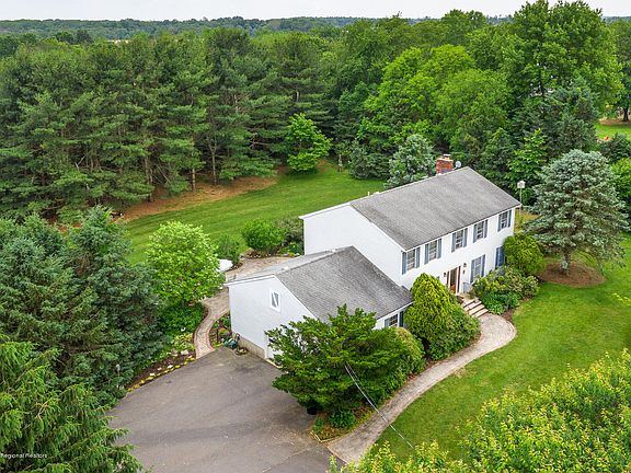 Nestled away on its own 3.5 acre park like setting. Surrounded by horse farms, open space and a short drive to downtown historic Allentown. You enter the property through the towering flowering tree canopy down the extended driveway to a 4 bedroom, 2 1/2 bath colonial with 3 car side entry garage. As you stroll down the winding brick walk way to the front of the home you will begin to realize the peacefulness this home has to offer. Enter the center hall with formal living to your right and formal dining to your left. Walk to the rear of the home you will enter a large country kitchen with ample cabinets, newer appliance package and slider leading outside. From the kitchen to the right is a cozy but generous sized family room with a real classic brick wood burning fireplace (not a fake insert) to left of the kitchen is every homeowners dream Mud room with WA, DR, Sink and direct access to the garage. Upstairs is an open plan with 3 generous sized bedrooms and a massive family room with large walk in closet and new master bath. As you enter the backyard from the kitchen you step onto the elevated trex deck with retractable awning. Step down the stairs onto the paver patio and you will notice the Goldfish pond with flowering aquatic plants to your right and the hot tub to your left. As you stand and gaze from the raised patio with natural stone wall blanketed by perennials and slightly shadowed by trees you will fully appreciate the serenity of what you have found. Lush backyard bordered by trees and it keeps going with a sprawling meadow in the back with many plants native to the area. Please visit this home and experience all that it has to offer. Home is boasting hardwood floors throughout, New Heating and Hot water heater. Full basement with extra height ceiling, plenty of room to finish, build a work shop or just for storage.