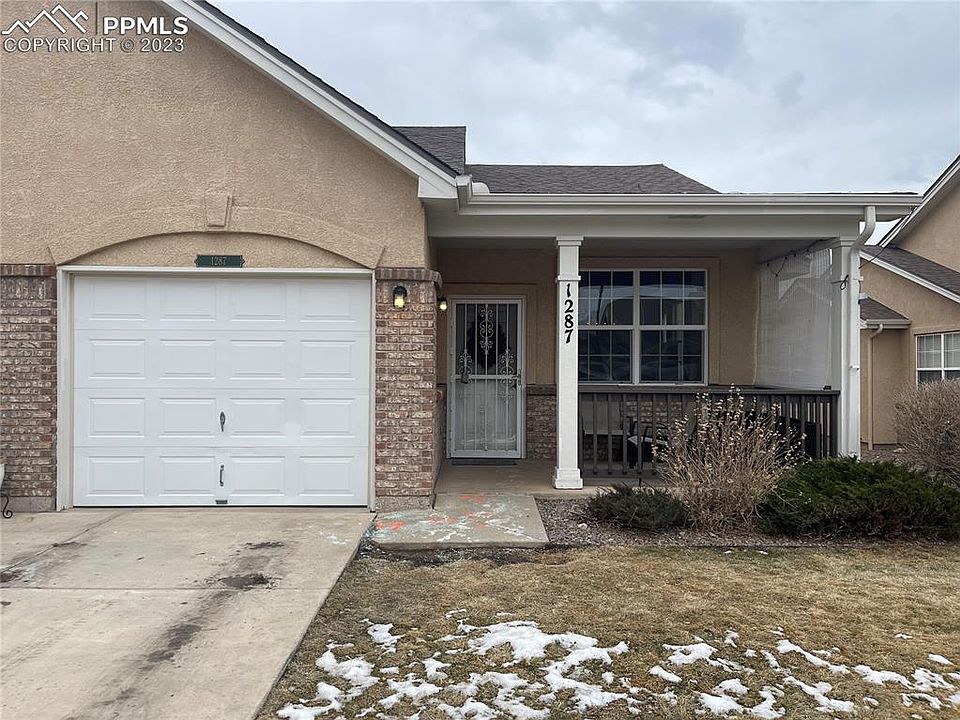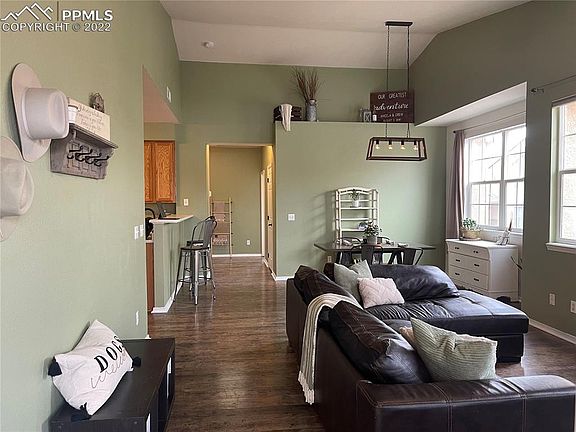 Located within the quiet and sought after Monument Villas community, this END UNIT townhome features easy one level access, with two bedrooms, two bathrooms and a one car garage all on the same level. As you enter the home, you will notice the vaulted ceilings and open floor plan that features a large living room area with lots of windows that offer lots of natural lighting and a gas fireplace, bright dining room area with enough wall space for a buffet or hutch and a large kitchen with a breakfast bar and all appliances. The master bedroom also has lots of light and features an attached 3/4 bath with a large walk-in shower and a single vanity, as well as a nicely sized walk-in closet. Located opposite of the master bedroom, you will find the second bedroom that walks out to the back patio. Just off of the second bedroom, you will find a full bathroom with a shower/bathtub combination and single vanity. The laundry facilities are located just off of the kitchen area. The community is very well maintained and features a clubhouse with an exercise room, activity center with an included kitchen for parties or other events, as well as other amenities. Included within the HOA management fee is exterior maintenance, landscaping maintenance, covenant enforcement, insurance, water, trash removal, and snow removal. This community is located within close proximity to downtown Monument, shopping, restaurants, schools, parks, with easy accessibility to Colorado Springs or Denver via I-25.