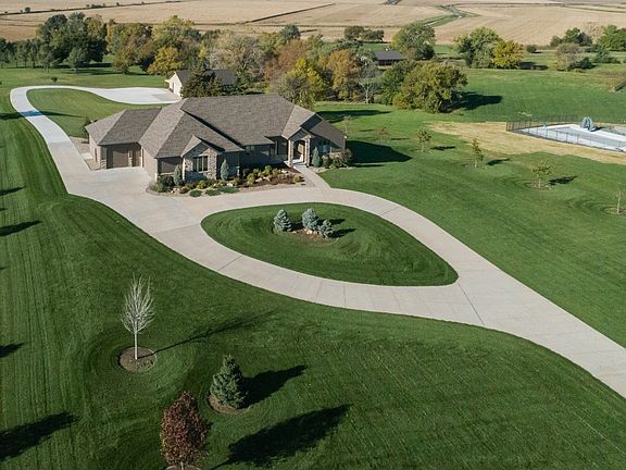 Contract Pending, to remain on market for back up offers. Kick back & enjoy the panoramic view from this designer-perfect walkout ranch on six acres northwest of Omaha. All paved access, heated 5-car garage & roomy outbuilding/workshop. The house features an open concept great room upstairs with wood floors, plus granite, stainless steel in kitchen. Two fireplaces & two laundry locations. Master BR w/tub & walk-in shower, plus huge closet w/windows. In the light-filled downstairs, there's a family room with fireplace, 2 BRs & a workout room.