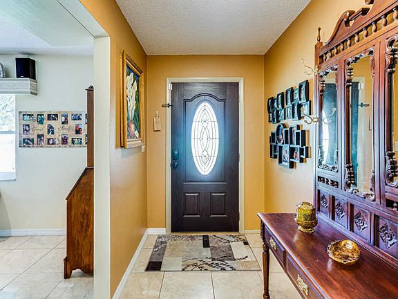Contact the Official Listing Agent Tracie Maler. Welcome home! This desirable half acre property has just what you're looking for in Florida living! Two bedroom split floor plan with beautifully updated baths and gorgeous tile flooring throughout. Master suite has dual custom closets, engineered wood floors, completely updated bathroom with pressure valve for shower. Kitchen is equipped with gas for cooking, custom pull-outs, in-line water filter for fridge and water dispenser at kitchen sink. Newer windows in living room, garage, bathrooms, guest bedroom. Living Room is wired for sound. The guest wing bedroom with wood laminate floors, updated bathroom, linen closet plus hall storage closet and can be very private by closing the barn door. Enclosed back porch is under heat and air. The lanai has cabinet storage, ceiling fan, TV hookup and sliding screen doors which open to the wood deck. Lush tropical plants adorn the yard including orange, lime, mango, avocado, pineapple. 20'X20' Shed. Roof 2009. HVAC 2016. Septic pumped 5/2019
