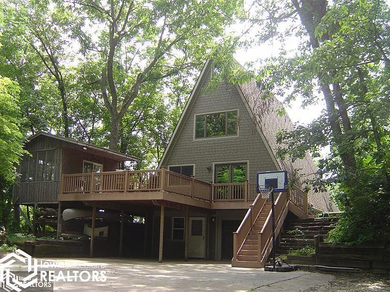 Picturest A frame that sits on 10.20 acres of timber that overlooks the Boone river valley . House completely remodled with a wonderful kitchen, new baths, appliances, heating & air, flooring, windows & doors,siding, maintence free decking and screened in area. If you are the outdoors type this is it!This property offers great hunting with a 2 acre fool plot. Full finished basement. Listing agent is Jim Fortune 515 297-1148.