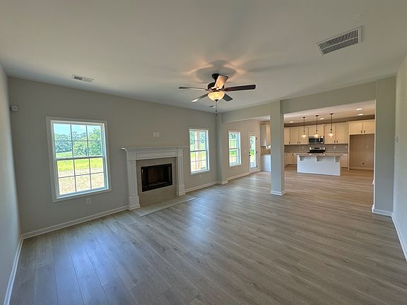 Must See Floorplan! Greeted by Soaring 2 Story Entry, Formal Dining Room Boasts Wainscotting & Coffered Ceiling. Great Room Features Wood Burning Fireplace. Stunning Kitchen Abundant w/ Stylish Cabinetry, Granite Countertops, Tiled Backsplash & Stainless Appliances. Large Kitchen Island overlooking Breakfast Area. Walk-in Pantry for Additional Storage. Owner's Entry Boasts our Signature Drop Zone, the perfect Family Catch all. Laundry Room & Half Bath conveniently tucked on the Main Level. Upstairs Offers an Expansive Owner's Suite, creating a Cozy Retreat. Owner's Bath w/ Garden Tub, Tiled Shower, Double Sinks & Impressive Walk-in Closet. Spacious Additional Bedrooms w/ Tons of Natural Light. Full Bath Upstairs steps from Additional Bedrooms. Enjoy Durable LVP Flooring throughout Living Spaces on Main Level & Tons of Hughston Homes Included Features! Our Signature Gameday Patio w/ Wood Burning Fireplace is the Perfect Space to Spend a Crisp Fall Evening!