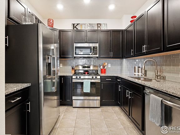This 2017 townhome features a main floor bedroom and shows like new and is move in ready. With 3 bedrooms, 3 and a half bathrooms and an unfinished basement, there is plenty of space. The kitchen features granite countertops, stainless steel appliances, a gas range, cabinet pulls and a generous pantry. Upgrades throughout the home include ceiling fans, gas fireplace, window coverings, and central air conditioning. There are two bedrooms, two full bathrooms and a small loft on the upper level. The outdoor living space is a south-facing front patio, with a privacy fence. The detached 1-car garage sits directly across from the front door. Enjoy the maintenance free living of a great community with a community pool, playground, basketball court and community trails. It's easy to walk to shopping, dining and trails and the new Thornton Tradewinds Recreation Center is nearby. This townhome is beautiful and ready to go!