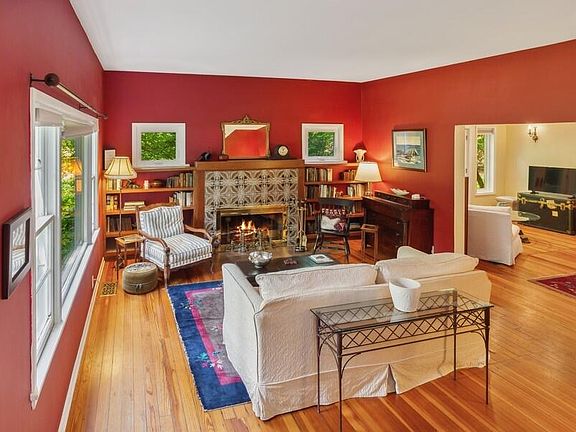 Honey Locust Farm set upon 4 wooded acres with convenient access to beaches and HarborCountry attractions. Lush gardens surround this 1890s 3 bed/2 bath modernized farmhouse with preserved original floors and architectural details. An airy vaulted kitchen with island opens to a multi-season family room and adjacent dining room. In cooler months the gas fireplace beckons in the spacious and bright living room. Main floor ensuite bedroom with attached bath offers privacy and convenience. Upper level hosts a large, bright guest room and primary suite, spa-like bath with marble flooring and deep soaking tub that completes the space. 1-car garage with attached work room, garden shed and many outdoor spaces for relaxation and entertaining. Welcome to Honey Locust Farm, circa 1890 set upon 4 private, heavily wooded acres with convenient access to area beaches, HarborCountry and SW Michigan wine country attractions. Lush gardens surround this published 3 bedroom / 2 bath home that has many modern updates yet offers preserved architectural details of the original farmhouse. A covered porch, walled garden along with two other cozy decks offers many outdoor spaces for relaxing and entertaining. The updated vaulted kitchen with center island, skylights, solid-surface counters and s/s appliances opens to the family room that doubles as a screened multi-season room. During the cooler months, you'll nestle in front of the gas-log fireplace in the spacious living room with original wood floors and staircase. Your guests will enjoy holiday entertaining and gatherings in the open-flowing dining room with an additional sitting/lounging area which offers French doors to one of the 3 garden decks. A main-floor ensuite bedroom suite with attached bath and the laundry/mud room complete the main floor. The upper level offers a large, bright guest room with walk-in closet, primary suite with spa-like bath featuring marble flooring and a deep soaking claw-footed tub. The private four acre parcel has areas for private entertaining, pathways for strolling through the gardens and densely wooded areas for exploring nature. A one car garage with attached work-room and additional garden shed offers plenty of room for seasonal storage. There's plenty of room for a pool and other outdoor entertaining areas.