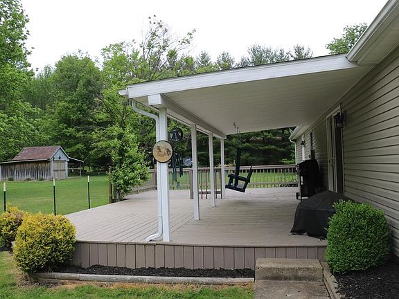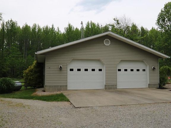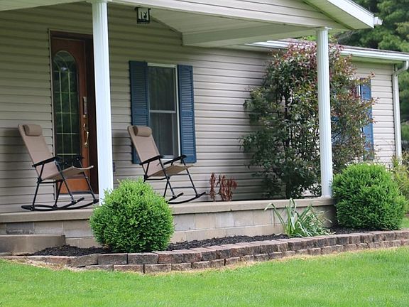 Great curb appeal surrounds this well kept home with 3 bedrooms, 2 bathrooms, kitchen with ceramic flooring and formal dining room. Spacious living room with cathedral ceilings and a wood burner for backup. A neat covered back porch, a fenced in yard, 2 car detached garage 32 x 84 3 sided building. Close to Salt Fork Lake and hunting rights. Completely surrounded by nicely landscaping and level grounds and paved parking area and concrete sidewalks and covered porches for relaxing on, This well maintained home is on a block crawl space and has a master suite with walk in closet and full bath with garden tub. Ample storage and new appliances in the kitchen stay. Dog kennels do not stay.
