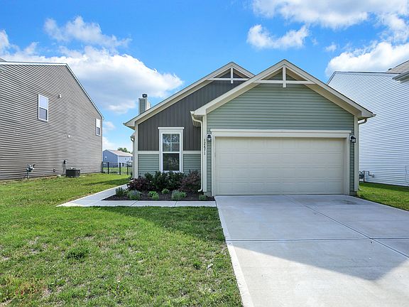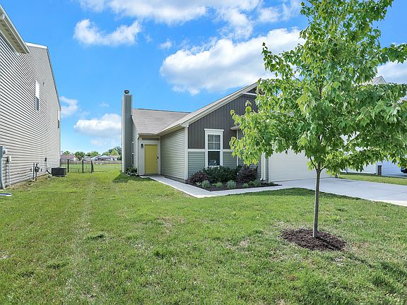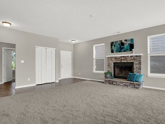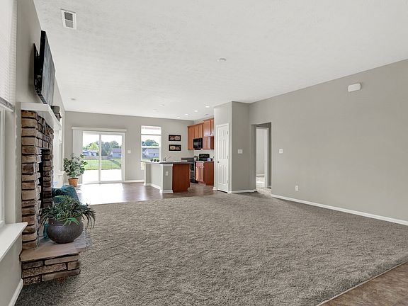 HUGE 25K PRICE DROP! Practically brand new 3BR/2BA contemporary ranch with open floor plan. Step inside & you'll immediately notice the 9' ceilings, new carpet & fresh paint and RARE water lot! Fantastic great room with vaulted ceiling features a wood burning brick fireplace. Kitchen has 42" cabinets, pantry & sleek black appliances. Enjoy meals in the dining area or pull up a bar stool to the center island. Convenient separate laundry room. Primary bedroom has lovely water view, private bathroom with dual sinks & large walk-in closet. Split floorplan includes additional 2 bedrooms with walk-in closets & full bathroom. Spacious two-car attached garage. Large backyard has AMAZING water view that can be enjoyed year-round!