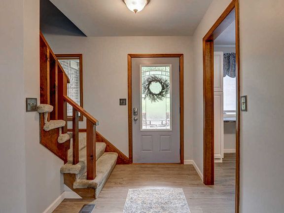 Welcome to this well maintained 3 bedroom, 2 1/2 bathroom home situated on Evansville's north side! Upon entering you will find a nice foyer to meet your guests and to the left is the kitchen. The kitchen offers an abundance of cabinets, laminate counter-tops with a glass back-splash, breakfast-bar, laminate flooring and stainless steel appliances. The spacious living room features carpet, a ceiling fan, wood beamed ceiling, fireplace with brick surround, and a glass sliding door that leads to a large open deck. The formal dining room has laminate flooring, crown molding and a ceiling fan. The master suite has carpet, double closets and a fully renovated bathroom with a walk-in shower. There is a large laundry room with a 1/2 bathroom to complete the main level. Upstairs there are 2 more generous sized bedrooms, a full bathroom and a bonus room that can be utilized as a 4th bedroom, game room or man cave. Step out back to a huge back-yard that makes for a great place to entertain your guests. This home also has a 2 car attached garage for any extra storage you may need.