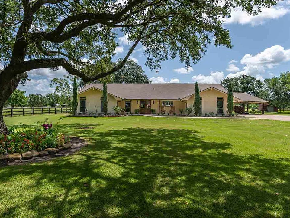 Picture perfect home in the sought after Hamshire-Fannett School District. This little slice of heaven is situated on 1.62 acres. Kitchen amenities include a Wolf Gas Stove with double ovens, Wolf microwave, Electrolux refrigerator and freezer, Bosch dishwasher, Quartz countertops, and custom cabinets. You will love the split floor plan with 4 bedrooms, 2 baths, and an office space. The interior of this home has been well thought out with custom window treatments, light fixtures and cabinet pulls from Restoration Hardware. The Master suite is spacious with double doors for access to the lovely backyard which is where the fun begins. The covered patio overlooks the lavish backyard with the highlight being the pool/hot tub with rock waterfall & slide along with beautiful landscaping to pull it all together.
