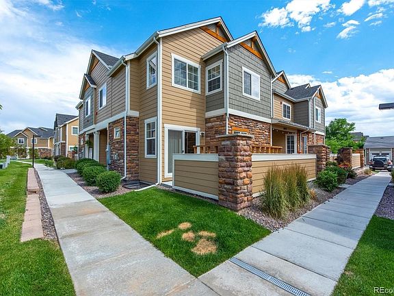 Welcome home to Thornton's Riverdale Park! This light and bright end-unit townhome boasts tons of natural light and an open main living space with classic style and designer finishes throughout. The inviting kitchen boasts ample espresso cabinetry, granite counters, a SS appliance package and center island, perfect for a breakfast bar. Upstairs hosts two primary suite bedrooms with ample closet space and ensuite upgraded bathrooms. A third non-conforming bedroom is perfect for a home office, playroom or home gym. Enjoy entertaining on the private back patio with ample seating area or take advantage of the many resort-style amenities included in Riverdale Park including an outdoor pool, park, basketball courts and trail system. 1 car detached garage included with property. Ideally located within minutes of neighborhood schools, parks, shopping, dining and easy access to major roadways. Do not hesitate to book your showing today!