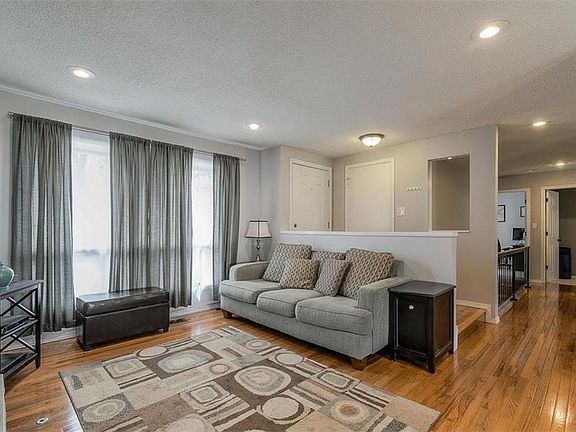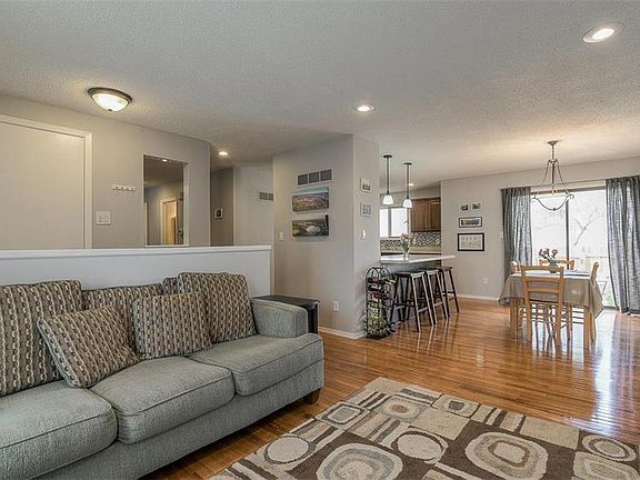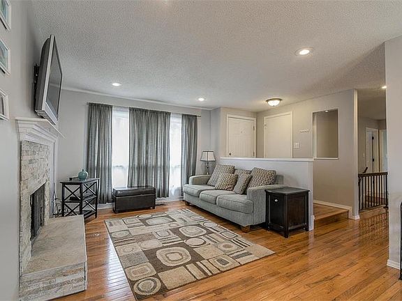 Modern & updated! Don't miss this coveted end unit nestled in Quivira Falls. Open floor plan features gleaming hardwoods & cozy fireplace. Beautiful kitchen with stainless steel appliances, mosaic tile backsplash, kitchen island with seating & more. Updated master en-suite and hallway bath. Finished basement area perfect for entertaining! Enjoy summer with the private outdoor space complete with patio & firepit. Unit includes 1 car garage! Prime location close to major highways, JCCC, shopping, & restaurants.