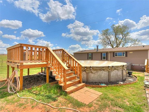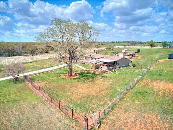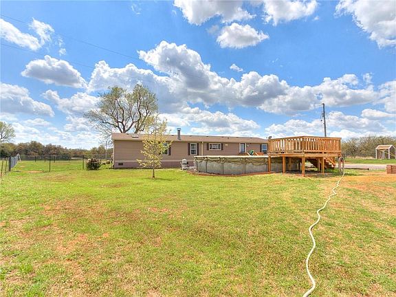 Welcome home to your oasis in the peaceful county. This double wide home is a 4 bed, 2 bath, has been almost completely remolded and includes newer appliances. Live comfortably with lots of space, storage and a POOL! Kitchen area is perfect for anyone who likes to cook, bake or entertain and includes island and separate dining area. Master bath has a double vanity, TWO WALK IN closets and a luxurious shower! On the other side of the home are 3 more bedrooms and a bathroom also with TWO sinks! Home has a full home water filtration system. Property is 7.5 (mol) gorgeous acres, covered parking for up to 4 cars, above ground storm shelter, covered deck, multiple out buildings, one of which has electrical and AC unit. Bring your pets and your livestock as this property is fenced and cross fenced and included a fenced in yard area perfect for dogs. There is an area for a second home with septic and well hookups and did have 2 homes at one point. Property is well cared for. Come see it today!