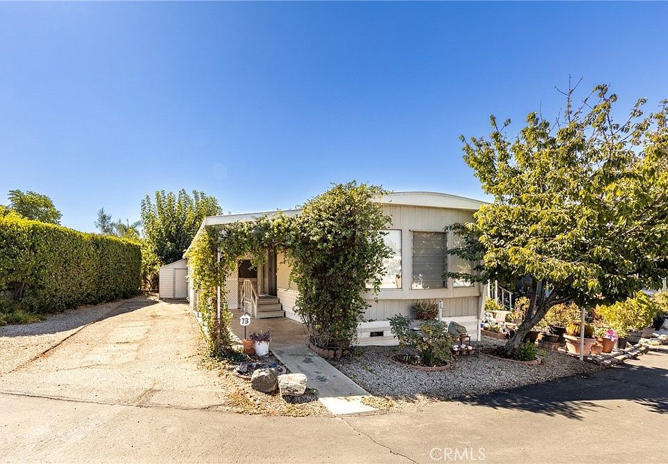 Quaint Single wide in a Senior Park. In quite upper Yucaipa. Home as brand-new vinyl flooring everywhere but in the Bedroom, which has carpet. Nice gally kitchen in front part of unit with dining area in front of that. Home has a rear screened patio and comes with 2 sheds. Lot has fruit trees and an Herb Garden and a small pond in the rear yard.