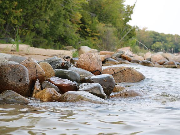 Log home on first floor; stick built with vinyl siding on second floor. Home is located on a secluded woodland bluff overlooking East Grand Traverse Bay. Includes 90 feet of frontage on East Grand Traverse Bay with a mix of sugar sand and rocks along the shoreline. Great swimming and kayaking.