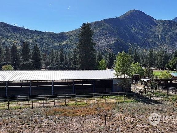 This property is an investors dream and there are many options for it's future use. 5 all level and usable acres with incredible views looking up Icicle and all of the surrounding mountains. Zoning will allow for property to be split into two 2.5 acre parcels. One parcel could have the existing home and the other parcel could have the enormous covered horse arena complete with viewing area, tack rooms and a small apartment. Truly a horse lovers dream but this property is absolutely perfect for anyone looking for the perfect spot in Leavenworth for a getaway or full time retreat of their own.