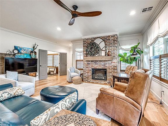Come see this gorgeous corner-lot home on over 3/4 of an acre! Luscious landscaping, mature trees, and a wrap-around porch greet you as you drive up. Inside, the open floor plan is well appointed, for easy entertaining in the living, dining, and gourmet kitchen. Gourmet kitchen has lots of cabinets and an oversized pantry with built in storage and another counter for workspace. The study has a stunning accent wall and large walk-in closet for storage. The oversize master bedroom has a spa-like bathroom and built-ins in the expansive master closet. Upgrades that have been added since the home was built are additional sidewalks, landscaping (the outside flower pots will stay), plantation shutters, 6-8 person storm shelter in the garage, insulated garage, water filtration system, metal fence, and a Generac generator with buried 500 gallon propane tank. Don't miss this amazing home!