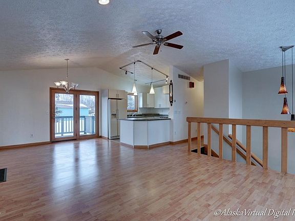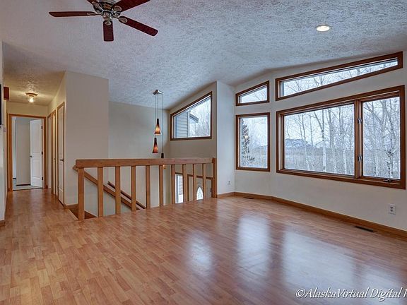 Exclusive location, Outer springer loop at the back of the neighborhood. Privacy, great views, 2 decks, and landscaped yard. Light oak laminate, Vaulted ceilings, Family room and a formal living room. Remodeled kitchen, metal Roof, Vinyl siding, Newer carpet, Gas fireplace, HWH 1.5 yrs old, storage shed, paved driveway. Gated trail access to the Matanuska Riverbed for Rzr/Atv rides and hunting Same owner for 33 years. Carpets recently cleaned. Tiled surround in guest bathroom, Nice family room downstairs, fantastic scenery out each window. House backs up to a field at a nearby farm.