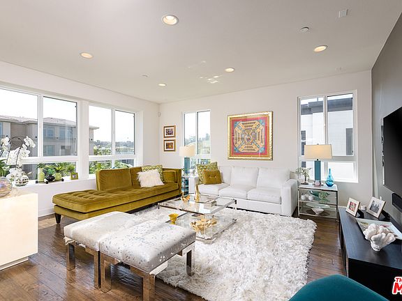 The absolute best unit in Camden. This top floor home is light and bright with gorgeous views in all directions!! This unit features an airy, open plan flooded with natural light, gorgeous floors through-out and a gourmet entertainer's kitchen with Viking appliances and quartz countertops. The designer finished bathrooms also have quartz countertops and upgraded tile and flooring. The large, bright master bedroom features a walk-in closet and a beautiful spa-like bathroom. There are solid interior doors throughout. A second bedroom features a custom, reclaimed wood wall and walk-in closet and there is a built-in bookcase and window seat in the third bedroom/office. The balcony overlooks the Lounge park and has a view of the Resort fitness center and the Loyola Marymount bell tower. There is a private oversized garage with side-by-side parking that has direct access to the building. This unit also features the lowest HOA dues in all of Phase 2 and no Mello-Roos. Included are a