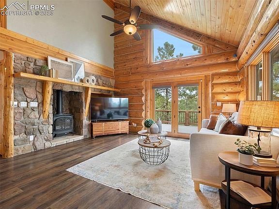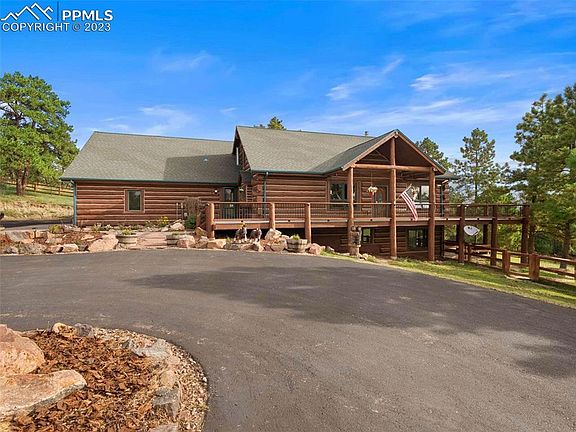 Come home to this STUNNING CUSTOM LOG HOME nestled on 35 acres of fully fenced land. Secluded yet conveniently close to town, this extraordinary property boasts a wooded terrain adorned with majestic and pines, creating a picturesque backdrop. The land is graced with a tranquil water ravine washout, adding to the natural charm. Nature enthusiasts will delight in the abundant wildlife that frequent the area. Step inside this 4 bedroom, 4 bath home with vaulted ceilings flowing with natural light from all the strategically placed windows that perfectly frame the serene surroundings. Embrace the outdoor beauty from the wrap-around porch, providing a space for relaxation. As if this weren't enough, the property boasts a MASSIVE 4800 square ft steel construction outbuilding, allowing for endless possibilities. For the avid traveler, three separate full RV hookups (Water, Electric, and Sewer) are readily available. Equestrian enthusiasts will enjoy the newer 5-stall horse barn, presenting an ideal haven for horse lovers. Come home to breathtaking sunsets and sunrises. Don't miss the chance to make this exceptional property yours and live your dream amidst nature's finest offerings. *KitchenAid Appliances include a Gas Convection 5 Burner Stove, Dishwasher, Convection Microwave and 5-Door French Refrigerator with ice maker *4800 Sq ft Outbuilding with 3 RV Hook ups *Newer 5 stall horse barn with 3 runouts, Slider door on one end and manual pull on other end with tack room and electricity *Three-Car attached oversized garage with heated epoxy floors *Newer Asphalt circular driveway, freshly sealed *Dog Run *Solar Lights Outlining One Section Of Outside Fencing, Several sections with Dog Fencing - Property Fully Fenced with Front Entrance Gate *Cal Spa 5 Seat/Lounger Hot Tub *All Floors heated throughout home *Pine Kitchen Cabinets with underneath Lighting, Beautiful Granite Counter Tops *Wired for ADT throughout Home