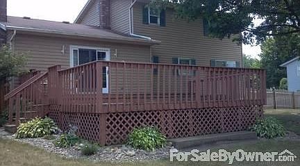 Large 3 bd home for sale located on a cul-de-sac, sits on a nice size lot, fenced-in back yard overlooked by a multi-level deck. Well maintained, neutral decor throughout. Updated furnance, water softener, plumbing, sump pump, newer windows. Motivated seller.Additional property info: http://www.forsalebyowner.com/listing/989AC?provider_id=28079