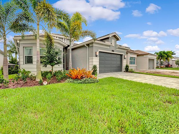 Welcome to this stunning Bimini floor plan situated on a waterfront lot within the sought-after Valencia Sound community. This home boasts exceptional features, including gas cooking and a spacious layout with three bedrooms plus office/den and three full baths. Throughout the living areas, you'll find elegant 24x24 porcelain rectified tile, creating an air of sophistication. The open floor plan allows for breathtaking lake views, making every day a visual delight. Step out onto the patio, where you'll appreciate the upgraded picture screen, adding to your outdoor enjoyment. The kitchen is a chef's dream, equipped with high-quality GE Profile appliances, while the great room extension provides additional space for relaxation and entertaining. Outside, the large pavers enhance the curb appeal, along with the upgraded wider driveway. Inside, the en suite bathroom modification in front and the upgraded 75-gallon water heater offer added convenience and comfort. The master bath boasts upgraded vanity cabinets, and solid wood core doors provide a touch of elegance. Practical features such as a whole-house water filter and softener, pull-outs in the kitchen and master bath cabinets, ensure convenience in your daily life. This home has been meticulously maintained and presents itself as a true model home, showcasing the highest level of care and attention to detail.