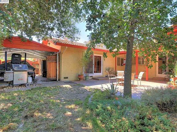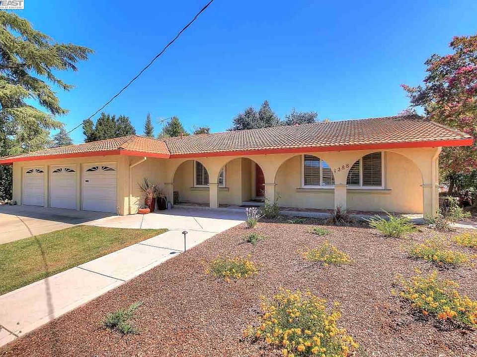 Single-story Mission-style custom home with owned solar in quiet neighborhood has spacious living room (currently used as a game room), formal dining room, updated kitchen with hickory cabinets and high-quality Zodiac quart countertops, breakfast area plus huge family room. Dual-pane windows with Plantation shutters, parquet and high-quality laminate flooring. Sliders in kitchen, family room and master open to lush, private backyard patio overlooking serene water-lily pond. Third bay of garage has been converted to laundry room, half bath, plus storage area. Sideyard access. Covered RV/boat parking. Big corner lot with mature landscaping, close to walking trails, parks, labs, schools, Community Center, restaurants, shopping.