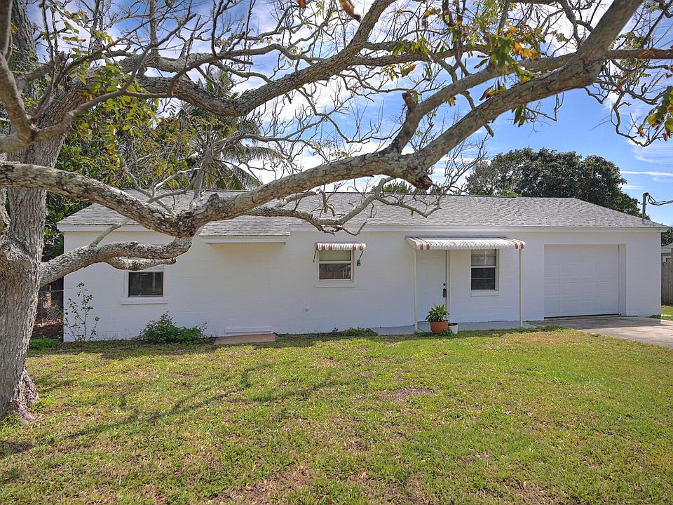 Welcome to your new home in South Merritt Island! This charming 2 bedroom, 1 bath is move-in ready and waiting for you to make it yours. 2020 Improvements include: All new laminate wood floors thru-out, Complete bathroom remodel w/ step in shower, Kitchen counters, sink, subway tile backsplash, added island and added dishwasher. Other improvements include: Fresh paint inside and out, all new electric wire, outlets and switches, & fully smoke remediated (including ductwork). Very nice covered back porch and partial fenced back yard. House has 1 car garage and washer/dryer convey. also no HOA. Rare to find move in ready homes in this price point in Merritt Island. Call Today!