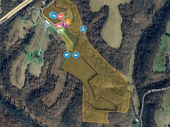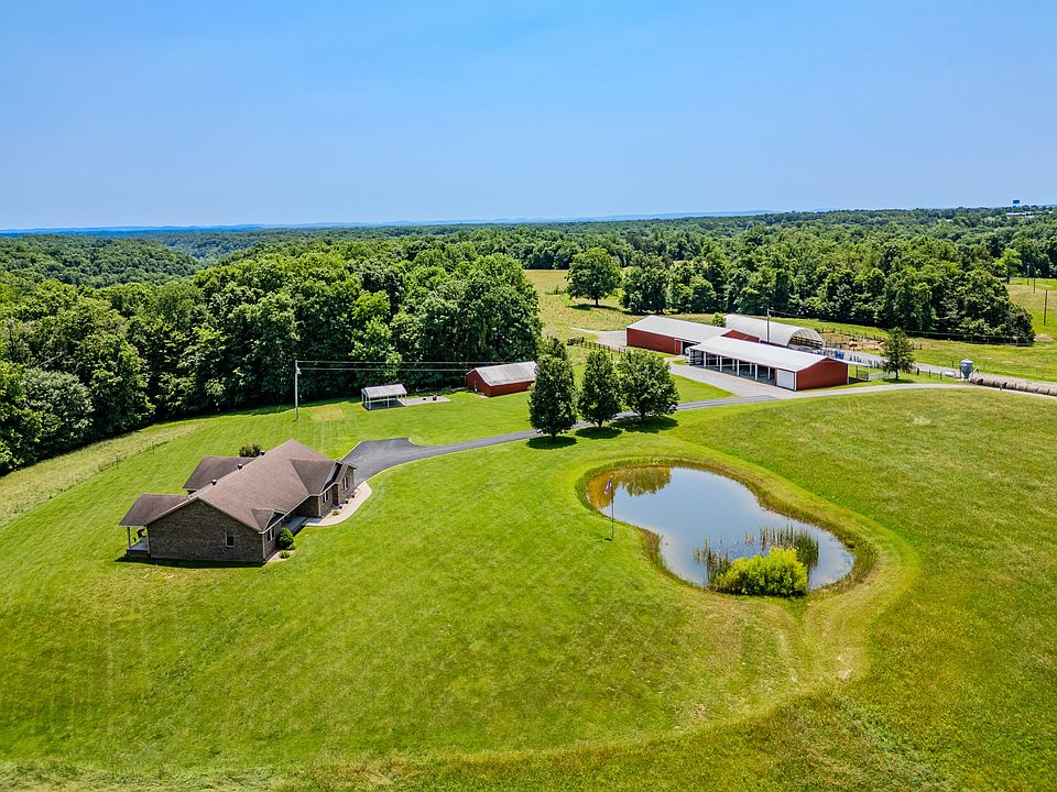 Welcome to 1288 Frontage Rd in Russell Springs—just 10 minutes from town, this 3-bedroom, 2-bath custom brick home offers over 2,100 sq ft on an unfinished basement, featuring a first floor primary suite and first floor laundry for added convenience. Built in 2005 by its original owner, the home includes a spacious living area, kitchen, and attached 2-car garage. Enjoy a stocked pond view from the covered front porch or unwind on the back patio overlooking 60 unrestricted acres filled with wildlife and walking trails that lead to 3 private waterfalls. The property includes a 40x42 workshop, a 96x42 machine shop with water and electric, and a 50x100 barn with concrete floors, electric, and RV or stall potential. Approximately 20 acres are cleared pasture with a second pond and feeding area, while nearly 30 acres offer marketable timber. A rare opportunity just minutes from Lake Cumberland..