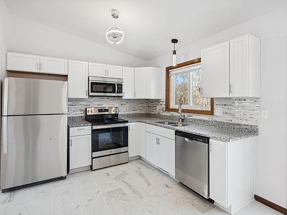 Everything is redone here! Bright and sunny split level on a large fenced lot on cul-de-sac near Otter Lake. Two bedrooms up, with a full bath, remodeled kitchen and large deck. Two more bedrooms in lower level with second bath, family room and extra large laundry room. Newer roof, new gutters, new concrete driveway, new deck, new carpet, new tile floors in kitchen, all new stainless steel appliances, new entry doors, new lighting, new tile backsplash, new granite countertops, new furnace, and more. Move-in and enjoy! *taxes are incorrect on most sites and reflect a past assessment that has been paid, taxes are $3,258 for 2023