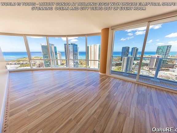 HUGE PRICE DROP $200K! Luxury high-rise 3 bedroom/2 bath, pet-friendly condo with floor-to-ceiling windows in a unique elliptical designed unit that provides an amazing 260° panoramic ocean views from every room. Newly remodeled with imported materials from Spain. Custom-made flooring and bathrooms designed with elegance for tranquil island living. Fully furnished (optional). Enjoy multiple amenities: swimming pool, Jacuzzis, tennis courts, gyms, party rooms, movie theaters, driving range, putting green, barbeque and picnic areas. Stylish wine bar and gourmet restaurant on the premises. Walking distance to Ala Moana beach and shopping center. Owner financing available. Seller will give out moving certificates to those who will come on Sunday open house. (those are two $100 gift certificates)