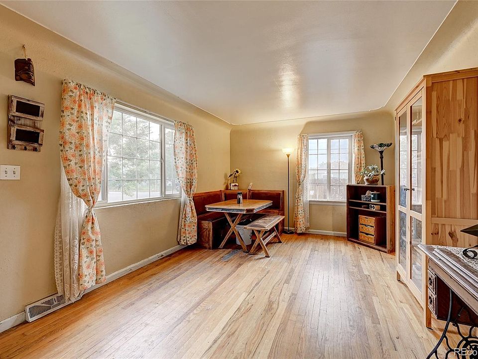 Incredible opportunity to get a home with 3 bedrooms, 2 bathrooms, and a finished basement on a corner lot with numerous mechanical upgrades. It got a new energy efficient A/C and furnace along with upgraded 40 g water heater in the last year. The garage is well-equipped for a workshop. All three walls have multiple electrical outlets, and the lights and garage door have a dedicated circuit. Further electrical features include and upgraded 200 amp main panel and a 70 amp sub-panel for the garage. Original hardwood flooring greets you when you enter the bright and inviting living room. A corner bench suitable for dining uses the space nicely. All three bedrooms are on the main level. The primary bedroom sits towards the back of the house, away from both streets for added tranquility. The second bedroom currently serves as a double office, and the third bedroom is next to the main-floor bathroom. Updated kitchen appliances including gas range. Downstairs, the basement has a large den area to relax and watch TV or to play. The second bathroom, which is downstairs, just got a new ejector pit and has a toilet, shower, and sink. A bonus room opens the opportunity for a home gym, hobby space, or other activities. While the place could use some cosmetic fixes, it presents an excellent opportunity for an investment property or a starter home. With a little bit of attention, it could be transformed into a valuable asset. The location offers convenient access to public transportation, less than 2 miles from the Colfax Light Rail Station. It’s also less than a mile from the renowned CU Anschutz Medical Center.