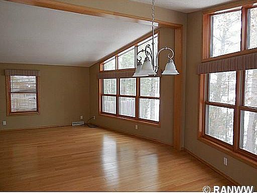 Stunning views of Lipsett Lake from the floor to ceiling windows in this prow front home. Featuring a chef's kitchen with stainless appliances, cherry cabinets and granite countertops. Two large bedrooms, master bath with walk in closet, and walkout lower level ready for your finishing touches. Two decks, one with screen enclosure, all surrounded by mature trees. Don't miss this stunning home!