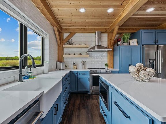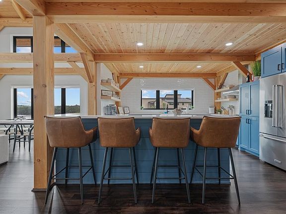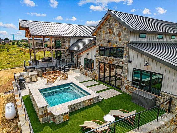Luxury Lakeside Living with Investment Potential in The Reserve at Gaines Bend Discover unparalleled lakeside luxury in this bespoke timber-frame estate, gracefully perched along the prestigious cliff line of The Reserve at Gaines Bend on Possum Kingdom Lake. Designed with craftsmanship and sophistication in mind, this exquisite residence boasts 4,560 square feet of meticulously curated living space, complemented by a 1,400-square-foot climate-controlled party barn - complete with commercial-grade epoxy flooring - ideal for year-round gatherings and grand entertaining. The main residence features 4 spacious bedrooms and 3 thoughtfully designed bathrooms, blending refined comfort with timeless elegance. The open-concept living area is framed by dramatic vaulted ceilings and a striking stone fireplace, offering a seamless connection to the outdoors. The primary suite is a private sanctuary with a custom walk-in closet and spa-inspired en suite bath - truly a must-see masterpiece. The party barn includes a spacious bunk room and a thoughtfully designed full bathroom, offering both comfort and functionality for guests. Outdoors, enjoy resort-style relaxation in your own cocktail pool, perfectly positioned to capture sweeping lake views and stunning sunsets. Designed with both luxury and leisure in mind, the outdoor living spaces are ideal for entertaining or quiet moments of reflection. Currently operating as a high-performing short-term rental, this property offers a rare combination of lifestyle and income potential. Whether you're seeking a full-time lakefront retreat, a luxurious weekend escape, or a proven investment property, this extraordinary home delivers on every level. Schedule your private tour today and experience the best of Possum Kingdom Lake living.