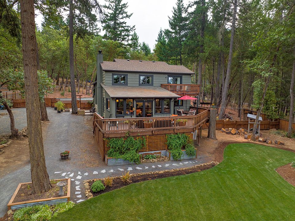 Welcome to 1288 Summit Loop. Situated in the foothills above Grants Pass, this unique home offers a blend of craftsman style and mountain lodge. The living room stuns with vaulted cedar plank ceilings, wood beams, and large windows. Make your way to the spacious redwood deck with mountain views and beautiful sunsets. The remodeled kitchen boasts new cabinetry with additional open shelving, top of the line appliances, and granite countertops. Outside, you'll be greeted with 1.26 acres of fully fenced, usable land. Highlighted by the manicured landscaping, complete with an automatic sprinkler system, two full RV hookups, the opportunity for an ADU, and last, but definitely not least, a 42x30 detached shop with room for a work shop area plus plenty of storage for boats, cars, and toys. All this is located just minutes from shopping and entertainment.