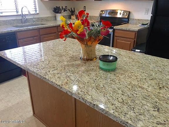 Beautiful 4 bedroom, 2 bath home. Split bedroom plan. New exterior paint June 2017. Upgraded kitchen with granite counters, large island. Open eat in breakfast nook, opens to family room. Bright and open floor plan. Arches and ledges add a nice design touch to interior. 4th bedroom could be a office with double doors. Covered back patio. Subdivision tucked in beside the Riverwalk. Move in ready! Won't last see today! Great access to I-10 and I-19 freeways