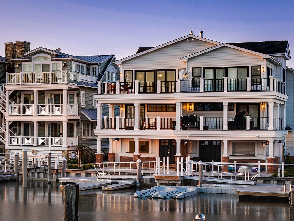 WATERFRONT. PRIVATE BOAT DOCK. AMAZING SUNSET VIEWS. ELEVATOR. UPSIDE DOWN LIVING. MULTIPLE DECKS. LOCATION. Designed with both an active lifestyle and relaxation in mind, this 2.5-year-old, 4 Bed/4.5 Bath waterfront townhome located on Spicers Creek will meet all your needs. Like new as it was enjoyed only seasonally by the owners and never rented. Enjoy your own private boat slip and hop on your boat, jet skis, kayaks, etc. from the convenience of your own patio and head out to the bay or ocean. Entertain with ease on your spacious covered dockside patio with travertine tile, Brazilian mahogany Ipe roof and a pass-through bar w/ granite countertop. A prime spot to grill, sit by a firepit or bask in the sun. Direct access to one of the two flex spaces - use it for storage or an indoor hang out space. Also on the ground floor is additional storage, outdoor shower, tiled foyer and a 2 car garage with epoxy floors perfect for cars and/or golf carts. The elevator with access to all 3 levels provides very easy transport for groceries, luggage or those challenged by stairs. Continue to the second floor to find the Primary bedroom with stunning water views, its own full bath, private covered Brazilian mahogany Ipe deck to enjoy your morning coffee or a quiet evening after a long sun-filled day. 3 additional bedrooms, 2 additional full baths and the laundry room with extra storage complete the second floor. The third level continues to impress with amazing water views, flexible floor plan and stylish features throughout. The kitchen boasts soft grey cabinetry, tile backsplash, quartz countertops, built-in range, Wolf & Sub-Zero appliances, and a center island for additional seating. The adjoining living/dining area with vaulted ceilings, gas fireplace and sliding glass doors leading to another Brazilian mahogany Ipe deck which provides plenty of room to gather and enjoy gorgeous sunset views. Opposite the kitchen is spacious walk-in pantry and a coffee/wine bar with custom cabinetry, sink and beverage fridge. A second flex space is currently used as a second living/tv room with a full bathroom but could transition to a 5th bedroom. All bathrooms designed with custom tile. Photos of lower outdoor patio and connecting inside room are virtually staged. Amazing location just minutes to Cape May Harbor or the Canal for access to the Ocean or Bay. Walk to the Lobster House, C-View, Wawa, Lucky Bones, or take a short bike ride to the beach. Fully furnished & ready to move in, you won’t want to miss out on this chance to start living your waterfront dream.