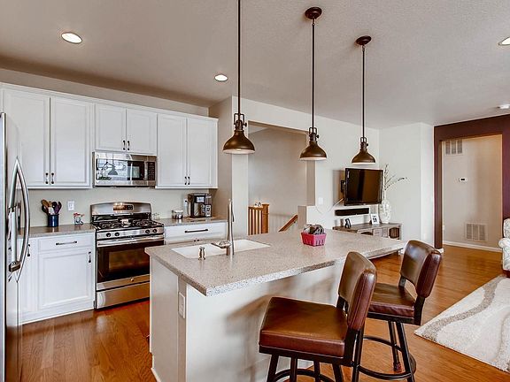 Tasteful open floor plan in the sought after 55+ Community of Skystone! This home is turn key and Move-In Ready!!! Upgrades include engineered wood flooring, extended covered patio, Hi-Macs solid surface countertops, upgraded carpet in the master, LG SS appliances and complete professional landscaping with irrigation. The gourmet kitchen opens to the dining & living areas and is perfect for entertaining family and friends. The spacious covered patio overlooks the professionally landscaped and irrigated back yard. The lot orientation affords this home a unique and private feel. The Master Bath boasts a walk in closet, walk in shower and double vanity. Basement is open for buyer's finishing choices and currently includes egress windows, sump pump, rough-ins for an additional bath and quality HVAC. The Lodge includes a high end fitness facility, community pool and club house for community gatherings. Professional photos coming soon!!