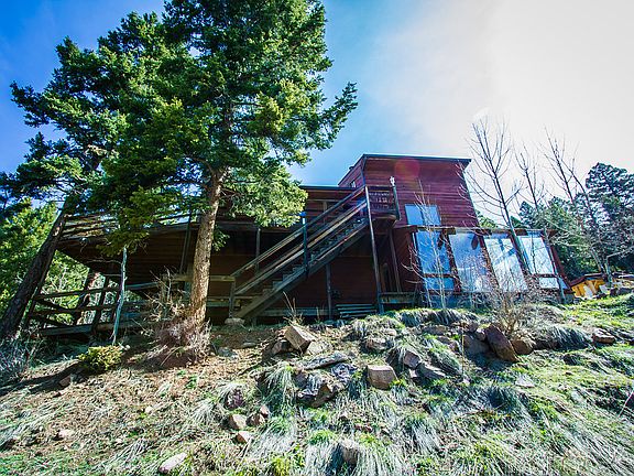 Cozy yet very private home on 14.67 wooded acres. Nice and inviting kitchen with hickory cabinets, tiled floor, leading to the dining room with a large bay window. The large master bedroom has a walk-in closet and a dry sauna off the master bath. New pellet stove in the lower level all ready for those cozy winter days. Paved driveway, dog run and parking for an RV. Nice glass Solarium room on the back of the house, 9.5' X 14', with deck and outside drain, great plant or indoor garden room, accessible from the walk out basement and from the outside. Snow-capped mountains (Rampart Range) views from the deck or living room. Easy access on county maintained paved road, only minutes to shopping and amenities.