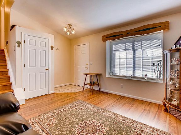 Well maintained multi level home in Parker! 3 bedrooms, 3 bath with attached 2 car garage! Formal living room! Family room features sliding doors to the backyard, ceiling fan & fireplace! Bright and sunny kitchen with eating space, tile floors, newer stove & refrigerator! 3 upper level bedrooms! Master with vaulted ceiling! Finished basement with rec room and bath! Large fenced backyard with patio, sport court and 2 sheds! Other features include air conditioning, humidifier, newer windows, newer furnace and water heater, covered front porch & vaulted ceilings!