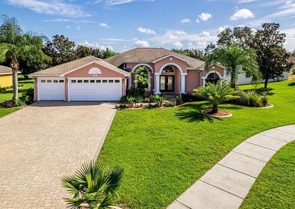 When you step into this warm and inviting abode with a private pool in lovely Sand Ridge, it's going to feel just like coming home! This smart home on a charming cul-de-sac lot has curb appeal for days, including a pavered driveway and lanai, fenced (2020) back yard, and lush landscaping. The true 3-car garage provides plenty of space for all your vehicles, and the 3rd bay's garage door opener was replaced in 2022. Beautiful double doors open into a large foyer, which leads to the living and dining room combo with gorgeous hardwood flooring and a double tray ceiling. Architectural details like high ceilings and arched doorways add touches of elegance throughout. Cooks will adore the kitchen with its upgraded wood cabinets, granite counters, large pantry, and breakfast bar. There are also sleek stainless steel appliances; the refrigerator and dishwasher are new in 2021. The spacious family room boasts a built-in entertainment/storage center with ceiling surround sound speakers located throughout the home. It's the perfect spot for family game night or to settle in for your next binge-watch marathon. A split bedroom floor plan means the master suite is a private respite after a long day. The master bedroom is generously sized with his-and-hers walk-in closets and private access to the pool area. Inside the master bathroom, you'll discover a dual sink vanity, a large garden tub, and a separate walk-in shower. The guest bedrooms are sizable with plenty of closet space for storage. And the exterior space of this home is just as amazing as the interior! Through glass sliding doors, Florida fun awaits! Relax under the shade of the lanai or catch some rays on the pool deck; when it gets too warm, take a dip in the in-ground saltwater pool. The pool is heated electrically, so swim laps or float leisurely all year long to your heart's content. And if you get chilly, not to worry - jump into the gas-heated spa and let the warm water melt your stress away. A stunning back yard has tons of room for pets or little ones to play safely. And if you're into fresh produce, you're in luck, because there are several different fruit trees on the property, including a fig tree, a limequat tree, a lemon tree, a peach tree, and 4 banana trees! This home does have a water softener (2021); the water heater was replaced in 2020, and the well pressure tank in 2022. New AC in 2018. Sand Ridge is a gated community with low HOA fees in a prime location just off Elgin Blvd. There are tons of local dining and shopping options nearby. It's also not far from the Suncoast Parkway for easy access to Tampa and its amenities, including the international airport. Anderson Snow Park, Veterans Memorial Park, and Weeki Wachee Springs State Park all fall within a 6 mile radius; Pine Island Beach is less than 12 miles away. Make that "coming home" feeling permanent by making this home yours forever!