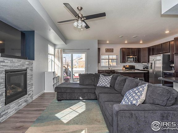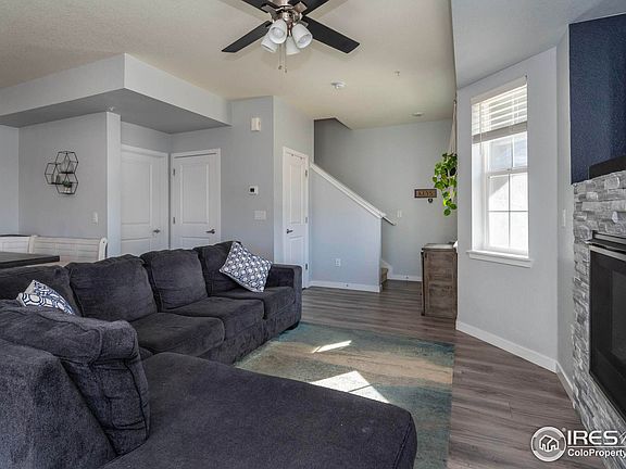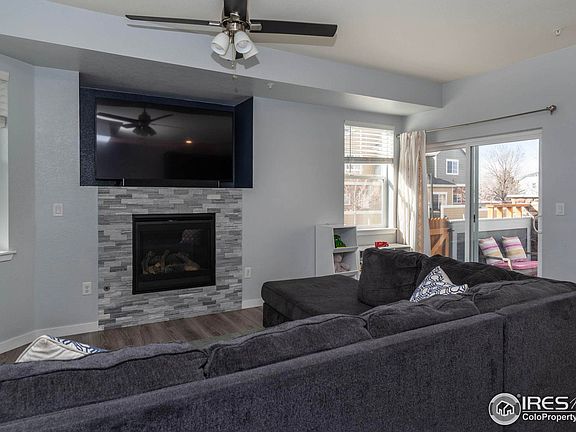 Perfect for first time buyers! This open floor plan with living room and cozy fireplace, overlooks the kitchen with granite counters, stainless appliances, large island and dining area. Sliding door to your own patio to host your BBQ's and have your morning coffee. Oversize main floor powder room. Upstairs is a nice primary bedroom with private bathroom and walk in closet. Bedroom two has ensuite bathroom and there's an additional bonus room - could be office/nursery/TV room with mountain views! Good sized unfinished basement for future bed/bath or finish as family room with laundry and extra fridge, both included. Detached garage just steps away offers plenty of extra storage. Walk to the community pool, clubhouse and park, while the HOA maintains the grounds for you! This newer townhome is in a perfect location close to shops, new grocery store, coffee shops and easy access to Denver. Welcome home!