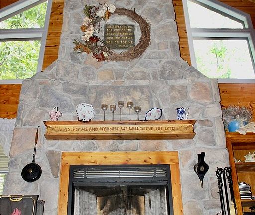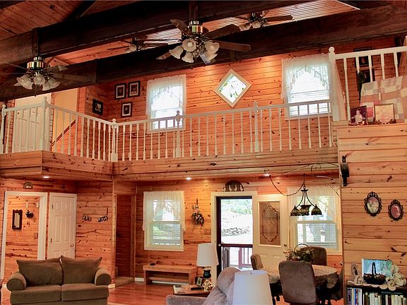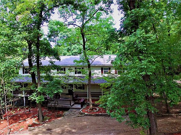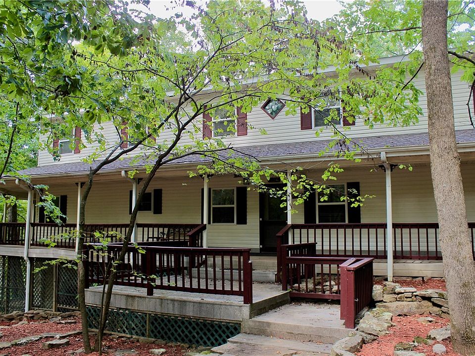 Custom built 4963 sqft home on 21.84+/- acres with mature hardwoods and full wrap around porch. Upon entering the main level your greeted by a 22+/- foot tall cathedral ceiling and a stunning stone fireplace. The home has everything you need on the main level to include a dining room, kitchen, laundry room, mud room, study with fireplace, office, and garage. Also on main level is the master bedroom with 3rd fireplace, master bath, and a private entry from porch. Second level has balcony, 8 bedrooms, 2 studies, 2 bathrooms with multiple showers/tubs, and game/bonus room. The basement has a semi safe room, entertainment room, and 2nd garage with wood burning stove that helps heat the home. The home is supported by rural water, central HVAC, electric furnace and 2 water heaters. The property has been surveyed into 3 tracts with mature timber, wet weather waterfall, and trail system. Al this is located just 20 minutes from Fayettville. Located just about 20 minutes from Fayettville and Devils Den State Park.