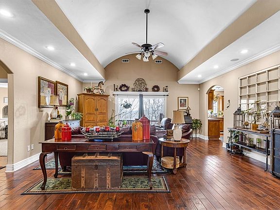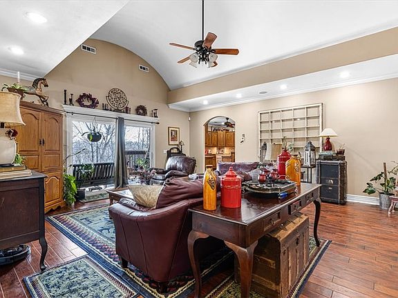 Beautiful home on 4.21 acres! Nature abounds as you enjoy the peace and quiet of the country with a gorgeous view yet just 5 minutes to Lowell on paved roads. Home has a very open feel and large rooms. It is a true 4 bedroom with a designated office. The vaulted rounded living room ceilings and huge kitchen add to the grand feeling in this home. The primary suite offers a fireplace and access to the back deck! Crown molding, walk in closets and large walk-in pantry add to this stunner. Updated hardwood flooring and carpet, new microwave /June 2021, new Carrier HVAC with 4 zones /Dec. 2019, new roof / 2016, ADT security lights & cameras. Electric range is also plumbed for gas. Beaver lake access on Ervin McGarrah road at public county ramp or around MonteNe Cove at MonteNe public ramp. Fantastic outdoor living spaces with amazing views. The character in this home amazing! All of this AND the garage is heated and cooled with a workshop and a sink! This home literally has it all and won't last long!