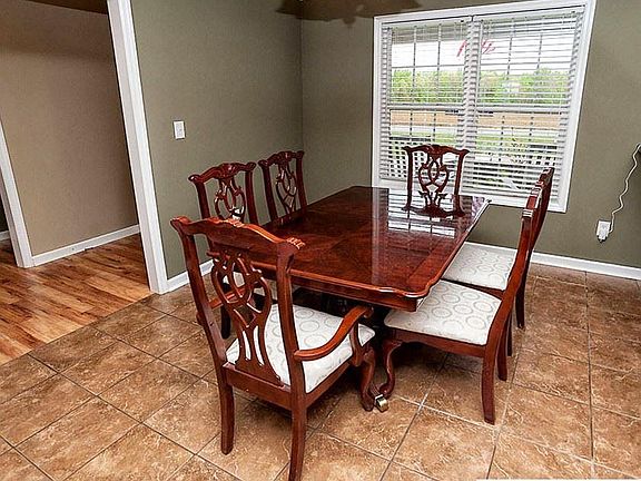 Lovely home with an open floor plan that features a spacious living room with trey ceilings, and crown moulding. Tile floor throughout the kitchen and breakfast area. Kitchen is equipped with stainless steel appliances, granite, an eat-in kitchen, pantry and ample cabinetry great for storage. Master Suite offers trey ceilings, crown moulding, walk-in closet and private bath with dual vanity. Enjoy some quiet time sitting outside on the covered front porch with delightful landscaping. Entertaining made easy with large backyard complete with privacy fence. This one is must see! Agents: please see remarks.