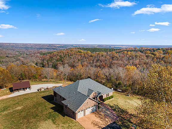 Absolutely alluring estate nestled on over 80 acres in the highly sought-after Ozark Mountains!! Capacious is an understatement with this immaculate home boasting over 5000 square feet! Captivating, storybook drive offers a warm, inviting welcome. The sprawling layout includes 4 spacious bedrooms, ensuite bathrooms, big walk-in closets, tons of cabinet storage, 2-story stone fireplace, large open kitchen, desirable whole-home Generac generator, brand new Lennox dual fuel heat & cooling system, notable Rainbow water filtration and softener system, classic, walk-out basement, charming covered rear porch with stunning unobstructed, post-card perfect views, soaring ceilings and ready to entertain with 2 expansive family rooms!! The picturesque, vast acreage includes a meticulously maintained 30x30 barn that is equipped for plenty of space for the tractors and toys and a huge bonus feature of a 30X70 over-sized shop!! The breathtaking views create the perfect rural retreat yet still a short, beautiful drive, close to town!! Hunters' paradise with tons of wildlife and trails throughout!! This property is truly an exquisite living experience!!
