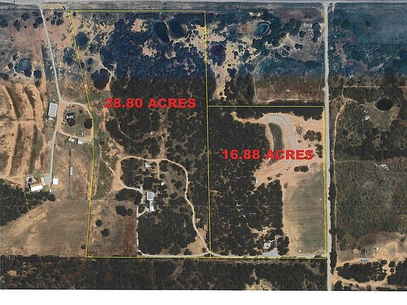 Find yourself secluded, fully shaded and relaxed under majestic oak trees in this three-bedroom, two-bath ranch-styled home on 28.80 acres between Bangs and Santa Anna, Texas. The property fronts Hwy 67-84 and features a new entrance and entry road leading to the house. The home includes an inviting front porch, spacious living area, wood-burning fireplace and large tank stocked full of catfish and bass. The kitchen includes a gas cooktop, granite counter tops and custom cabinetry. The home also includes a fully-windowed sun room and large primary bedroom and bath with huge walk-in shower and walk-in closet. The home also has a 400-square-foot air-conditioned and heated bonus room that could be used as a guest suite, playroom, workshop, office or workout room. The property includes a hay barn, storage building and separate septic system which could be used to service a guest house or RV.