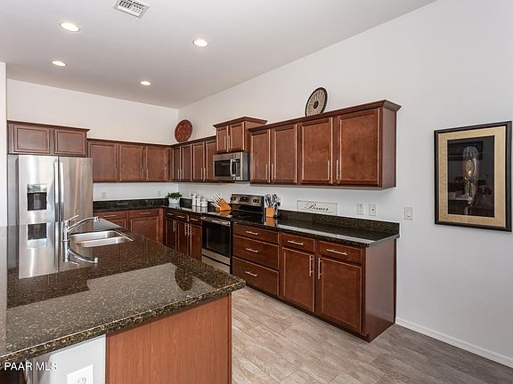 4 bedroom. 2 bath, 3 car garage with no neighbors behind you! This great home located in Quailwood Community is ready for you! Awesome sunsets and beautiful views of the Mingus Mountains. See this all from your extended paver back patio. Super open floor plan with room for entertaining. Home is energy efficient, has plenty of storage. Washer, dryer & refrigerator all convey! BRAND NEW ROOF with transferable warranty. Fascia boards recently painted. Please bring all offers. Quailwood offers an amazing Community Center with lots of activities. Enjoy the outdoor pool, basketball, pickle ball, tennis courts, indoor work-out room & so much more. This home is a MUST SEE! Please schedule your showing today. Super short escrow available.
