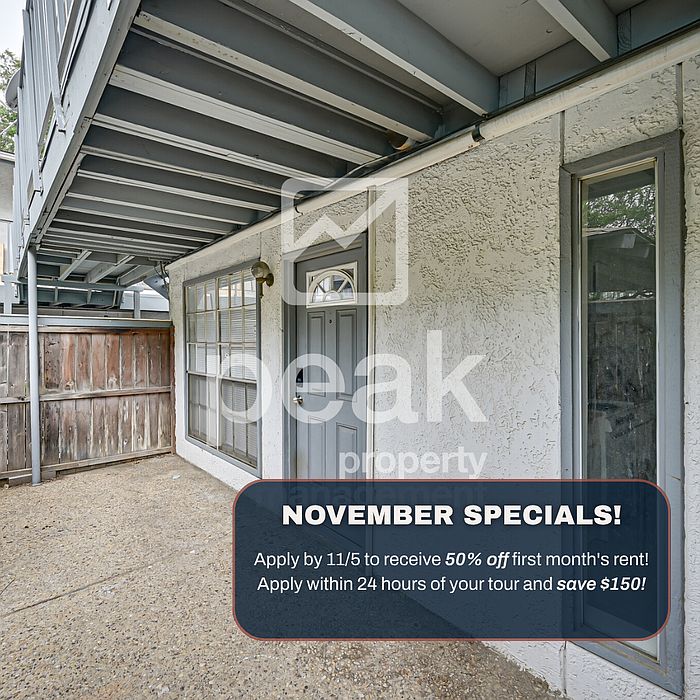 - Special offer! October SPECIAL! Apply to get 1/2 off your first months rent!