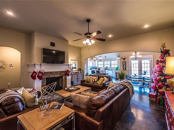 Country Feel, Close to town! Simply gorgeous 3BD/2BA brick & rock home feat an open floor plan, concrete, carpet & tile flooring, gas log fp, in-direct lighting, eat-in kitchen, granite counter tops, abundant white cabinetry, island, SS appliances, trendy lighting, lots of natural light, tray ceiling in spacious MBedroom, large granite vanity in tiled MBath, walk-in shower, WP tub, additional spacious bedrooms, cabinetry in utility room, mud room w/ storage, covered patio, privacy fenced backyard & more!