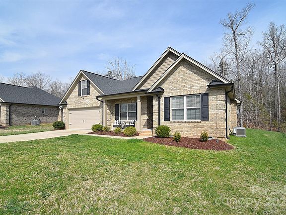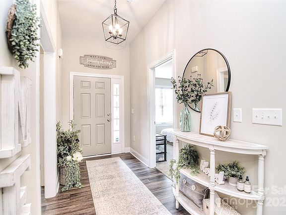 Privacy Galore! Enjoy quiet time on covered back porch with view of nature. This immaculate one level home offers peace and tranquility. Open floorplan including kitchen with loads of cabinets, center island with breakfast bar, stainless steel appliances. Great room with windows overlooking covered porch and wooded area. Aplit bedroom plan. Low maintenance vinyl plank flooring. Generous primary bedroom with en-suite. Neighborhood includes sidewalks, streetlights